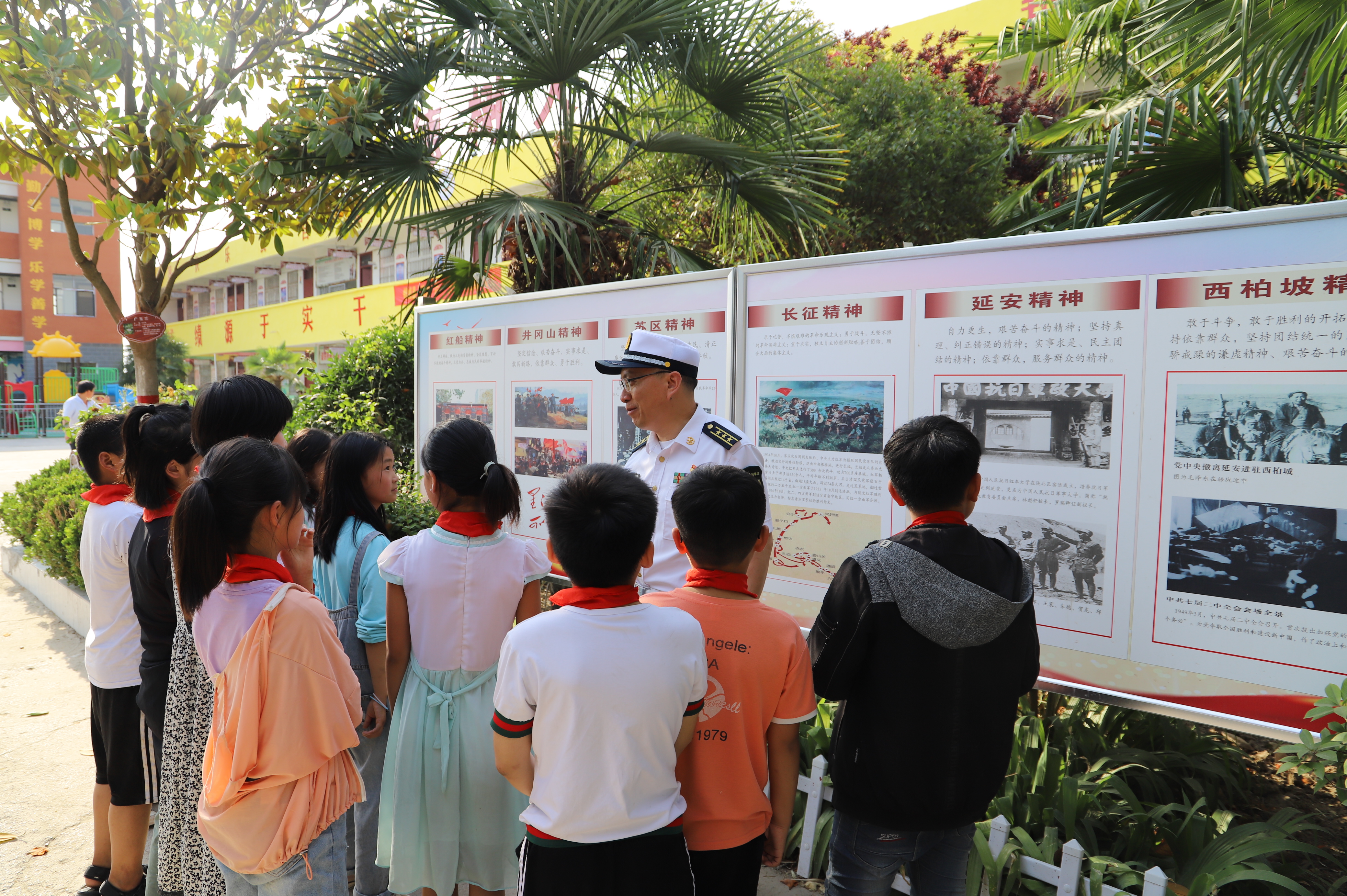 少年強則國強。眼下正是脫貧攻堅決戰(zhàn)決勝的關(guān)鍵時刻,鄲城縣人民武裝部為了強化幫扶村脫貧致富的內(nèi)生動力,全面斬斷“窮根”、栽下“富苗”,該部斥資數(shù)十萬元加強對東風(fēng)鄉(xiāng)大趙小學(xué)的幫扶力度,硬化、綠化、美化、亮化加紅色文化。該縣人武部部長董連江、政委金仁旺經(jīng)常到學(xué)校講革命精神,讓少先隊員了解革命歷史、感受革命傳統(tǒng),增強砥礪前行的理想信念,不忘初心跟黨走,一顆紅心永向黨,將革命精神傳承下去并發(fā)揚光大,讓紅色文化成果助力“中國夢”的實現(xiàn)。圖為鄲城縣人民武裝部政委金仁旺向少先隊員講述革命精神。