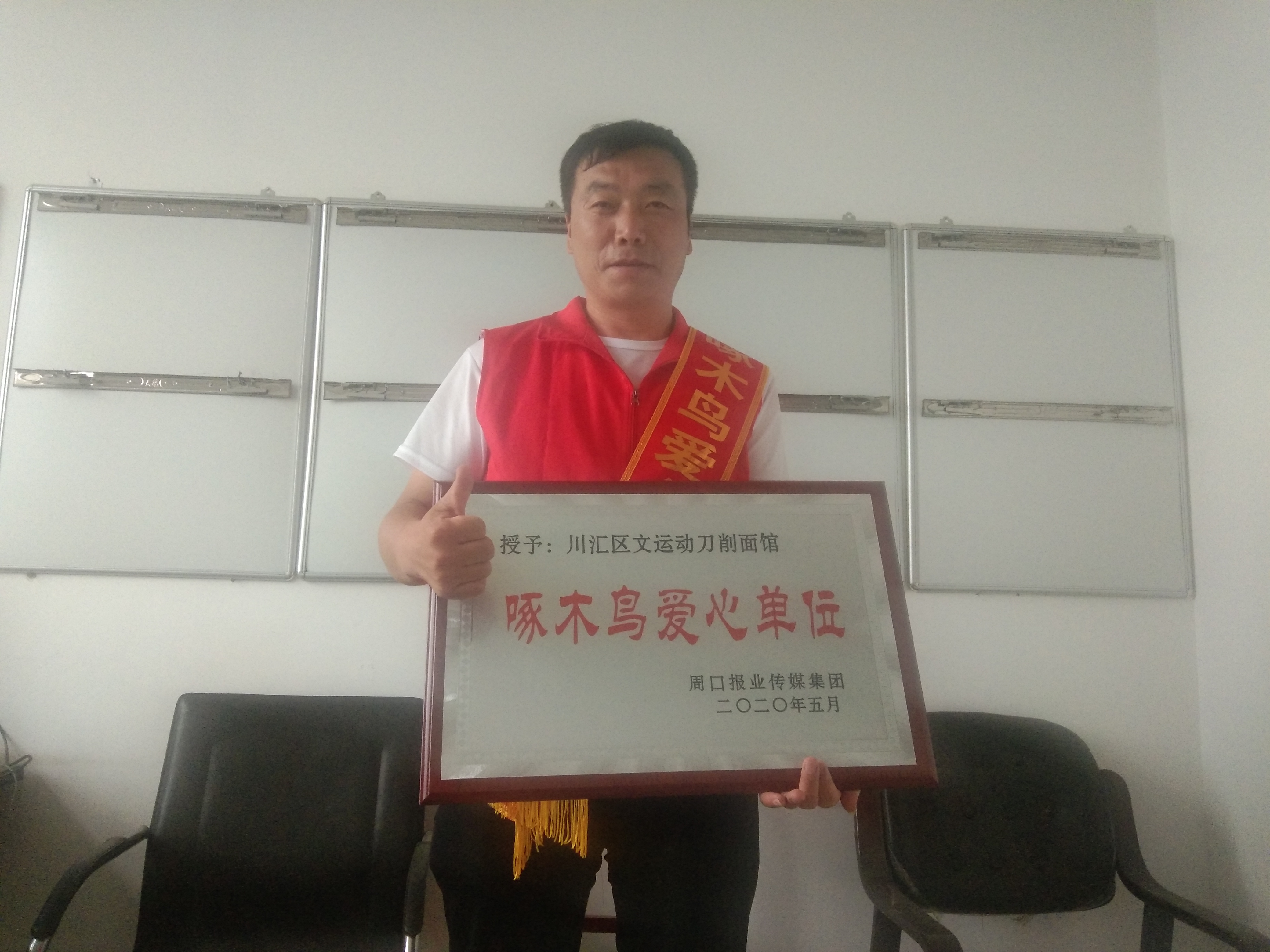 6月15日下午,周口報(bào)業(yè)傳媒集團(tuán)14樓會(huì)議室內(nèi),熱鬧非凡,10名優(yōu)秀啄木鳥(niǎo)志愿者和10家啄木鳥(niǎo)愛(ài)心單位被隆重表彰,他們一個(gè)個(gè)身披綬帶,上臺(tái)領(lǐng)獎(jiǎng),臉龐洋溢著自信而美麗的笑容。而文運(yùn)動(dòng)經(jīng)營(yíng)的“川匯區(qū)文運(yùn)動(dòng)刀削面館”被評(píng)為啄木鳥(niǎo)愛(ài)心單位,這無(wú)疑是對(duì)他多年來(lái)堅(jiān)持參加公益事業(yè)的褒獎(jiǎng)。