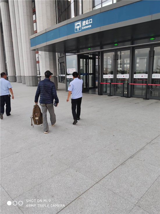 晚上8時(shí)許,陳劍鵬安排副所長趙良帶領(lǐng)輔警楊國強(qiáng)、李偉平,將該男子送到沈丘高鐵站踏上回家的路程,該男子多次為派出所民警鞠躬致謝,并流下感激的眼淚。