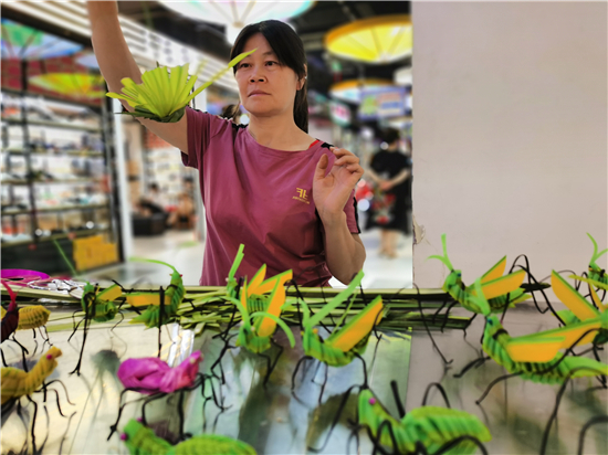 在五一路地下廣場,川匯區(qū)的彭彩云手中的幾片嫩綠的棕櫚葉在幾分鐘的時間內(nèi),就變成了精巧逼真、栩栩如生的小鳥,吸引了不少市民駐足觀看購買。