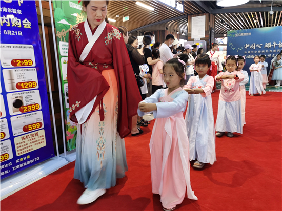 隨著我國的傳統(tǒng)節(jié)日端午節(jié)的臨近,我市不少商家舉行了不同主題的活動(dòng)來吸引大眾。6月21日,市區(qū)某大型超市舉辦了以弘揚(yáng)中華傳統(tǒng)禮儀新風(fēng)尚的主題系列活動(dòng)。在活動(dòng)現(xiàn)場,幾十名小朋友身著漢服現(xiàn)場為大家表演傳統(tǒng)禮儀。