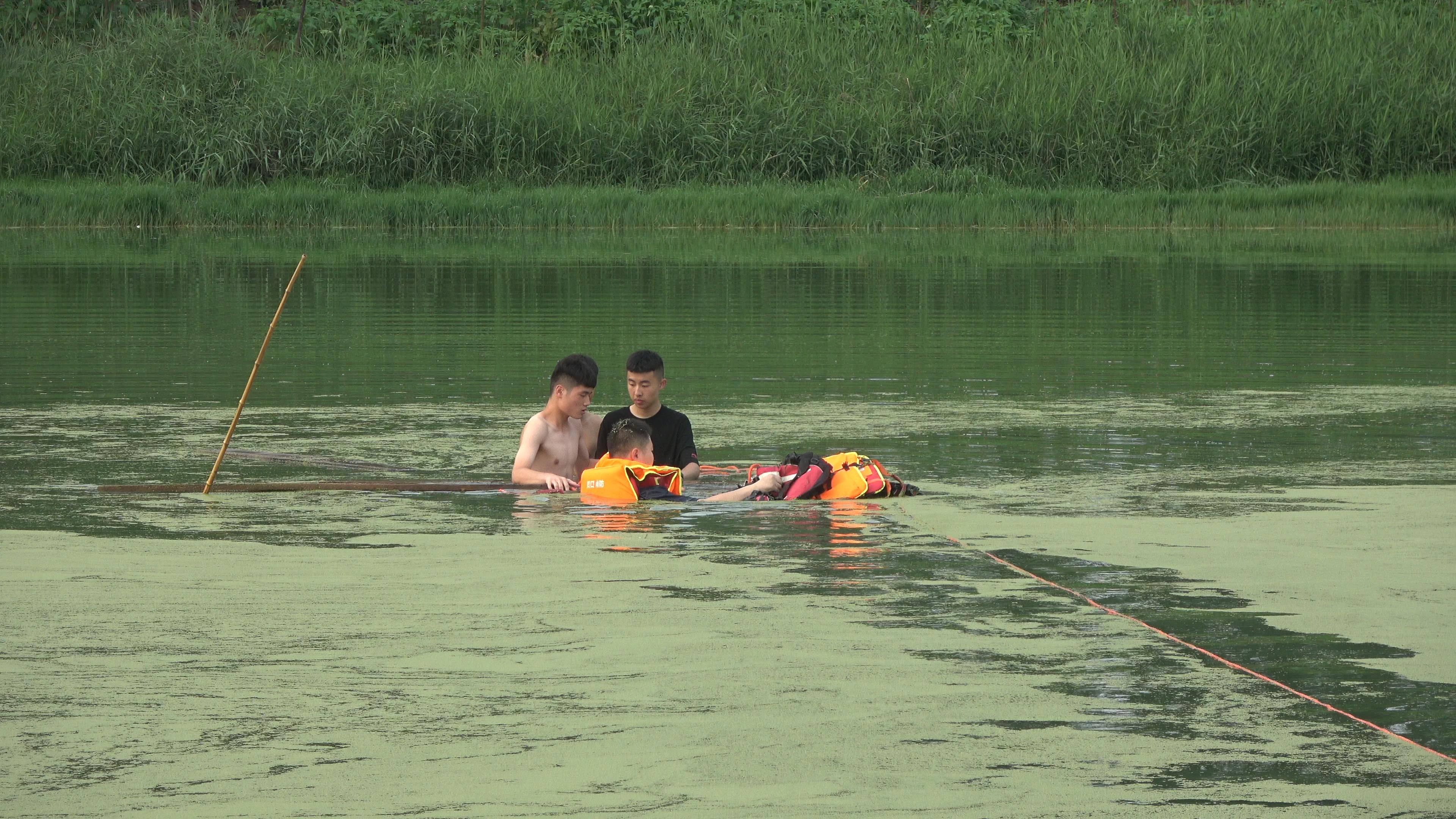 接到群眾報警后,太康縣消防救援大隊立即出動3部消防車、15名指戰(zhàn)員趕赴現(xiàn)場。救援人員發(fā)現(xiàn),由于近日多雨,河水有3米多深,三名少年站在已經(jīng)沉沒的船上搖搖晃晃,水已經(jīng)淹沒到胸部,情況十分危急。現(xiàn)場指揮員立即決定挑選2名水性較好的消防員攜帶救生衣、水域救援漂浮繩等相關器材,實施渡河營救??吹骄仍藛T一點點靠近,三名少年情緒穩(wěn)定了不少,隨后配合消防員將救生衣穿好,在消防員的指引下,三名少年拉著救援繩在岸上消防員的幫助下成功靠岸脫險。
