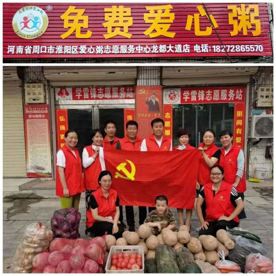 7月4日下午,在歡慶中國共產(chǎn)黨誕辰99周年之際,中共周口市淮陽區(qū)人民醫(yī)院行政后勤黨支部黨員志愿者馬道興、常杰、劉春蘭、楊莎莎、張琴、劉娟、任妍、朱琳月、郭秀榮一行10人在支部書記楊敬濤同志帶領下,再次來到菜市場,買來南瓜、冬瓜、胡蘿卜、洋蔥、土豆、黃瓜、西紅柿等新鮮時蔬送到了淮陽區(qū)龍都大道免費愛心粥屋,開展黨員志愿服務主題黨日活動,以別樣的方式慶祝黨的99華誕。