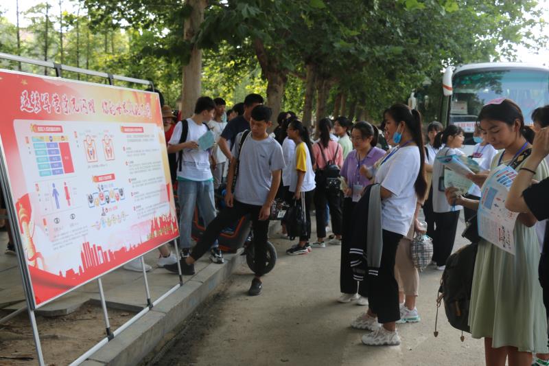在該縣各標準化高考考點征兵宣傳現(xiàn)場,人頭攢動、熱鬧非凡?!昂媚袃?,來當兵”大紅條幅和“把忠心獻給祖國,把青春獻給軍營”“參軍報國盡義務,熱血青年競風采”的大型宣傳牌格外引人注目,內(nèi)容豐富的征兵宣傳展板一字排開,《征兵宣傳手冊》《大學新生應征入伍宣傳單》《征兵政策宣傳解讀手冊》等征兵宣傳資料擺放在咨詢臺上一目了然,吸引了眾多的考生和家長駐足觀看,圍著咨詢臺詢問有關(guān)征兵事宜。