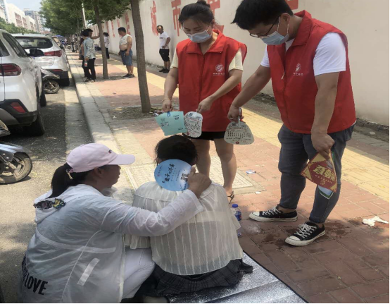 在各考點志愿活動現(xiàn)場,志愿者們早早搭起遮陽帳篷,擺好桌子、礦泉水,防暑應急藥品等用品,為考生和家長提供休息場所,在炎熱的夏日里為他們送上一份清涼和安心。同時,他們還維持考點周邊市容環(huán)境的整潔有序,對于大聲喧嘩等不文明行為及時勸阻;協(xié)助交警疏導交通,減少道路噪音對考試的影響,確保道路交通安全有序。期間,陸續(xù)有家長及考生前來咨詢就診,志愿者們熱情接待,為其測量血壓,提供礦泉水、解暑藥品等,得到家長及考生的一致好評。