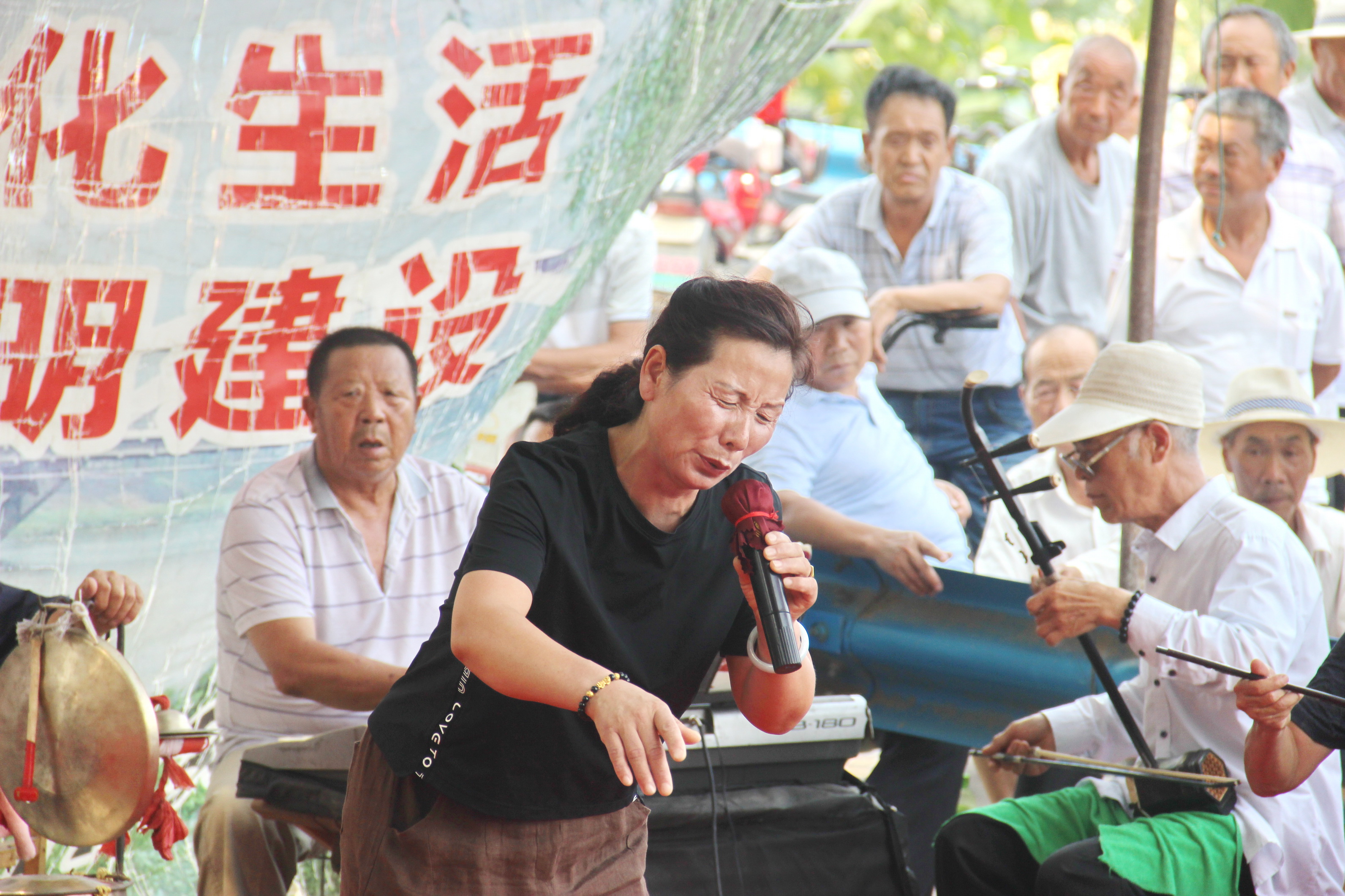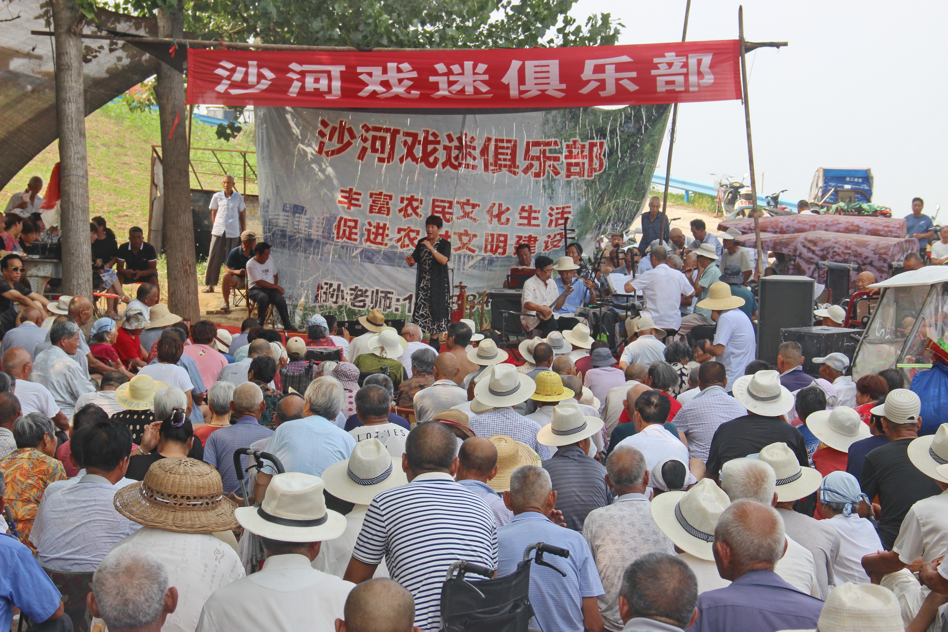 商水縣郝崗鎮(zhèn)大路李村位于漯河郾城、西華、商水三地交界之處,因該村臨近沙河,周邊十多個鄉(xiāng)鎮(zhèn)的文藝愛好者自發(fā)組建了沙河戲迷俱樂部。該俱樂部每周三、周六在河堤樹林中等地方舉辦兩場戲曲演唱會。演員來自周邊附近的戲迷愛好者,有唱常派的、閆派的、崔派的、豫東調(diào)的等,后臺樂隊也是有民間文藝愛好者自帶樂器免費表演,主持人由退休老教師、老干部組成,加上群眾捐款捐物幫助俱樂部添置音響等設(shè)備,目前在郝崗鎮(zhèn)文化部門的指導(dǎo)下該俱樂部已舉辦48期,成為周邊群眾才藝表演的好地方。
