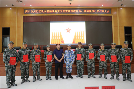 黨管武裝建設(shè)國防,軍民攜手共筑長城。為健全武裝工作組織領(lǐng)導(dǎo)體系為推動國防動員和后備力量建設(shè)在基層末端落實,7月16日上午,周口市川匯區(qū)召開基層武裝黨支部暨政治教導(dǎo)員、武裝委(組)員任職大會。周口軍分區(qū)司令員湯維政,區(qū)委書記、區(qū)人武部黨委第一書記李宗喜,市委組織部處級干部宋陽,區(qū)人武部政委高新傳、部長陳繼芳及城鄉(xiāng)一體化示示范區(qū)、經(jīng)濟開發(fā)區(qū)、港口物流產(chǎn)業(yè)聚集區(qū)等有關(guān)負責同志參加了大會。會上設(shè)立了18個基層武裝黨支部,任命了15名基層武裝部政治教導(dǎo)員、20名村(社區(qū))武裝委(組)員任職命令,武裝部政治教導(dǎo)員、武裝預(yù)建黨支部書記和兼職武裝委(組)員代表先后作了履職承諾發(fā)言,湯維政等為新任命的人員頒發(fā)了任職證書。