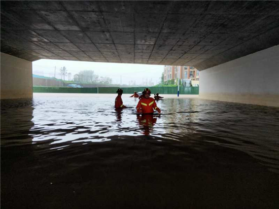 哪里有急難險(xiǎn)重,哪里就有消防指戰(zhàn)員的身影。當(dāng)日上午9時(shí)許,接到周口大道涵洞下有車輛被淹、司機(jī)遇困的警情后,示范區(qū)消防救援大隊(duì)緊急出動(dòng),面對(duì)齊胸的積水,他們無所畏懼,成功對(duì)遇困司機(jī)和車輛緊急施救。