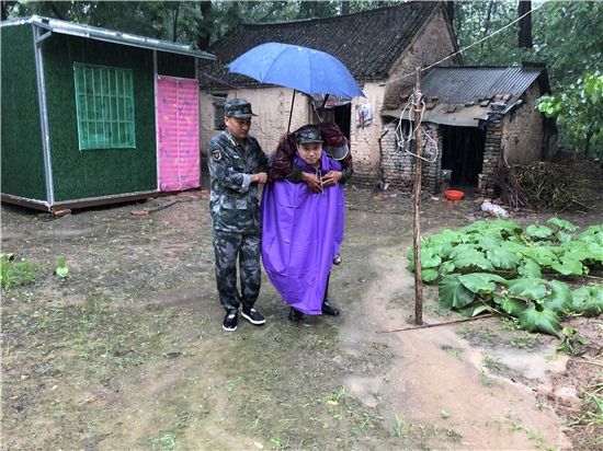 強(qiáng)降雨導(dǎo)致部分地勢(shì)較低的農(nóng)房及農(nóng)田被淹,在排查中,發(fā)現(xiàn)鄭老莊村幾處農(nóng)房被水淹泡,隨時(shí)有倒塌的危險(xiǎn),了解這一情況后,該鎮(zhèn)第八工作區(qū)區(qū)長(zhǎng)、“中國(guó)好人”、優(yōu)秀退役軍人蔣昆立即組織鄭老莊村兩委人員及民兵應(yīng)急隊(duì),第一時(shí)間趕到現(xiàn)場(chǎng),轉(zhuǎn)移隱患點(diǎn)周?chē)?hù)。“雨越來(lái)越大,你們這個(gè)屋今晚上不能住了,反正隨時(shí)都有倒塌的危險(xiǎn),把要緊的東西收拾一下,跟到我們走快點(diǎn)”蔣昆勸說(shuō)鄭老莊村受災(zāi)的一名老大爺。