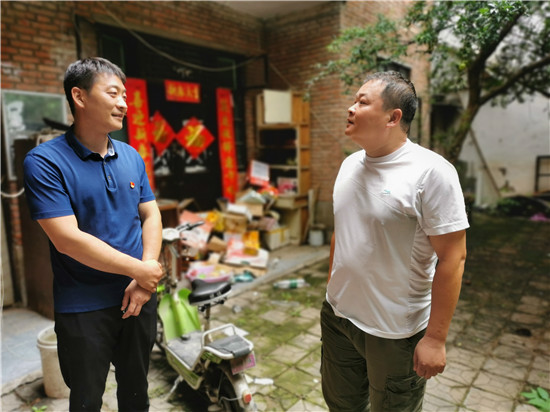 在河南居委會退伍軍人呂國良家,李春芳、范留勝仔細詢問其工作生活和子女就業(yè)、上學情況,告訴他家里有困難及時向鎮(zhèn)黨委政府放映,決不讓一個退伍軍人在脫貧致富路上掉隊。
