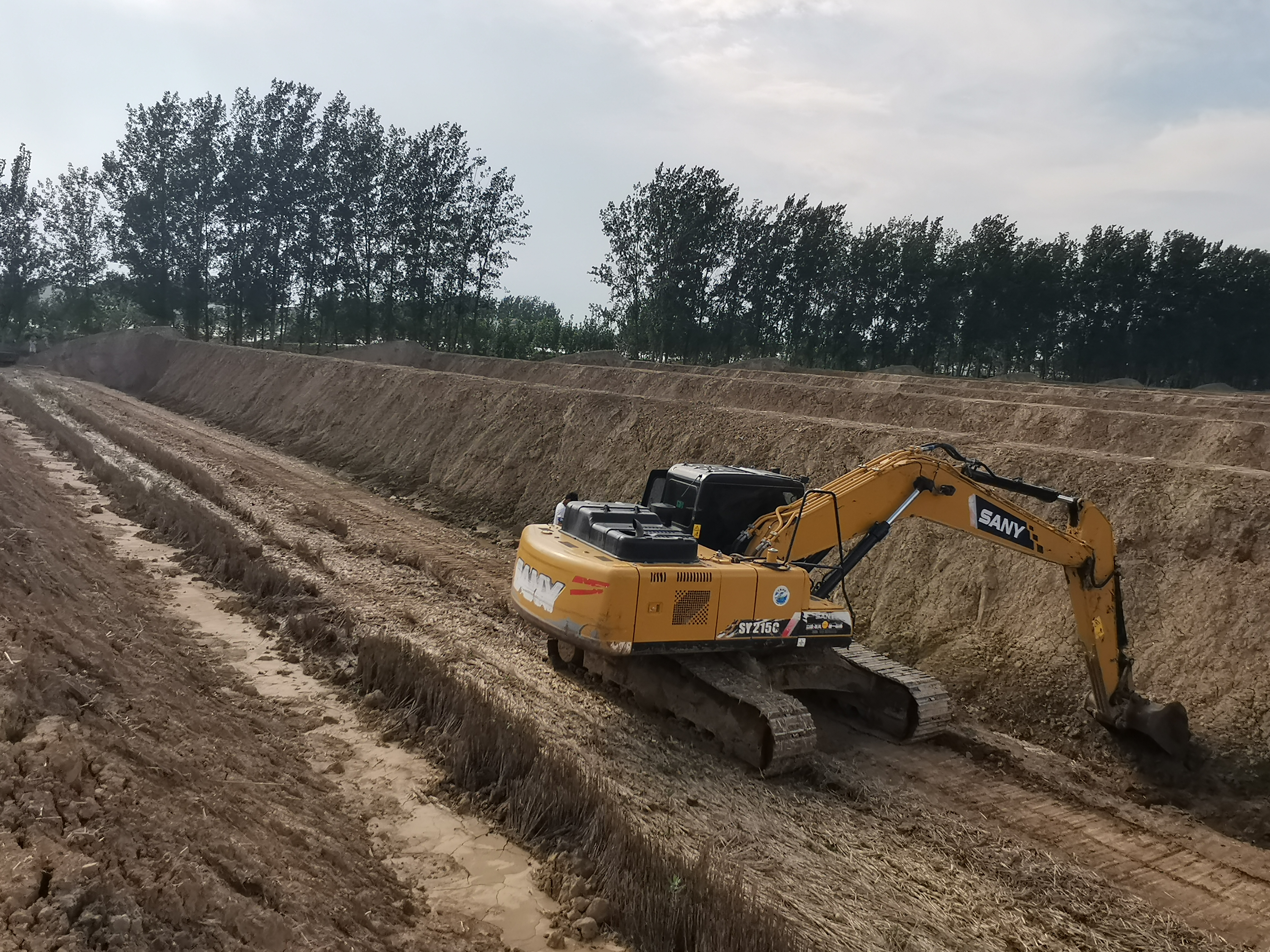 盛夏八月,扶溝縣柴崗鄉(xiāng)梅橋村幸福河畔綠意蔥蔥,生機盎然,河畔兩旁25座新建日光溫室大棚拔地而起正在緊張建設(shè)中,機器轟鳴聲此起彼伏,挖掘機、推土機穿梭而行,現(xiàn)場一片繁忙景象。受近期陰雨天氣影響,工人們正在抽積水、墊土方,克服不利因素加快施工進度、緊趕工期。