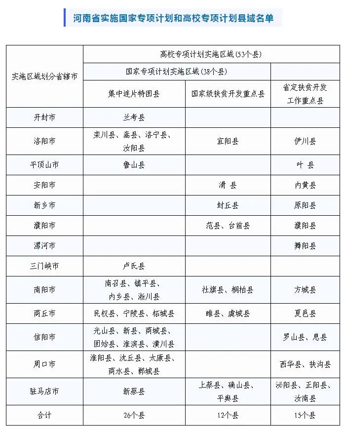 附件:河南省實施“國家專項計劃”和“高校專項計劃”縣域名單