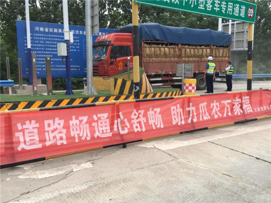 眼下正是瓜果集中上市的季節(jié),為幫助農(nóng)民銷售富有地方品牌特色的優(yōu)質(zhì)西瓜,促進當?shù)匚鞴辖?jīng)濟的發(fā)展,扶溝縣大新收費站全員出動保暢通,為全國各地拉瓜商販提供便捷服務,為當?shù)爻隹诮?jīng)濟的發(fā)展貢獻一份力量。