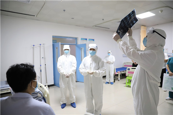 演練中,一名中年男子駕車到港區(qū)醫(yī)院就診,患者自述一周來(lái)在外地居住,無(wú)發(fā)熱癥狀,近一天來(lái)有氣促,活動(dòng)后胸悶、氣促加重,偶有咳嗽。經(jīng)急診科醫(yī)生多次詳細(xì)詢問(wèn)流行病學(xué)史,發(fā)現(xiàn)患者有隱瞞病史嫌疑(一周前同室居住工友,23日已確診為新冠患者),確定該病員為可疑新冠病毒肺炎患者。立即電話通知科主任及醫(yī)療救治專家組成員會(huì)診,根據(jù)患者主訴和臨床表現(xiàn),專家組分析高度懷疑病人為可疑感染新冠病毒病員。立即轉(zhuǎn)運(yùn)至隔離留觀室,并通知傳染病管理小組將疫情上報(bào)至市疾病預(yù)防控制中心,并協(xié)助對(duì)該病員進(jìn)行流行病學(xué)調(diào)查、轉(zhuǎn)運(yùn)及指導(dǎo)消毒、滅菌等工作。經(jīng)市級(jí)專家會(huì)診后,符合疑似病例,按照區(qū)防控指揮部規(guī)定,采用負(fù)壓轉(zhuǎn)運(yùn)車轉(zhuǎn)運(yùn)定點(diǎn)醫(yī)院治療。