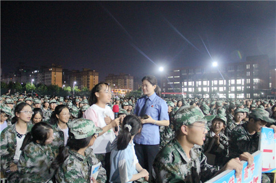 "你們正處于人生的花季,知識(shí)是養(yǎng)分,那么法律知識(shí)就好比是殺蟲劑,要學(xué)好,更要用好,要做到知法、守法、用法,在法治護(hù)航下遠(yuǎn)離校園欺凌,拒絕電信網(wǎng)絡(luò)詐騙,不義之財(cái)不可取,防范之心不可無(wú)……”。8月29日晚上7點(diǎn),黃昏謝去,暮色已經(jīng)模糊起來(lái)了,伴著淺淺的晚霞,扶溝縣檢察院檢委會(huì)專職委員郁玉琴帶領(lǐng)該院“女檢察官特別護(hù)未隊(duì)”的三名女檢察官到扶溝高中為正在接受軍訓(xùn)的1600余名高一新生們上了一堂別開(kāi)生面的法治課。