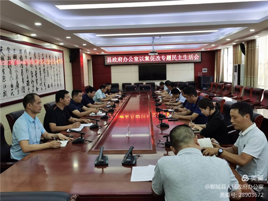 9月1日下午,鄲城縣政府辦公室黨總支部書記、主任賈培民主持召開以案促改專題民主生活會,政府辦班子成員,科級以上干部和駐政府辦紀檢組組長李振華、副組長胡宇帆參加會議。