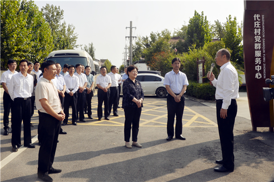 在東壩頭鎮(zhèn)張莊村,考察團(tuán)沿著習(xí)近平總書記的視察足跡,一路走,一路看,詳細(xì)了解張莊村美麗鄉(xiāng)村建設(shè)、農(nóng)業(yè)產(chǎn)業(yè)布局、鄉(xiāng)村旅游發(fā)展等方面的取得的成果,對張莊村圍繞“一院一景”“記得住鄉(xiāng)愁”的設(shè)計理念,充分利用破舊房屋、無人居住房屋、空閑廢地,精心打造特色亮點的做法十分贊賞。每到一個點,考察團(tuán)成員們聽得認(rèn)真、討論得也很熱烈,并與該縣有關(guān)人員進(jìn)行細(xì)致具體的溝通與交流,認(rèn)真學(xué)習(xí)先進(jìn)經(jīng)驗和典型做法。