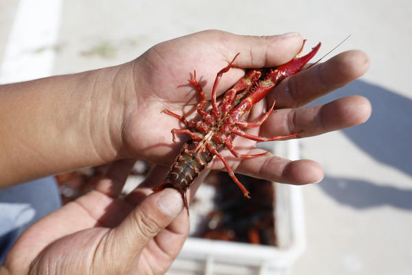 ▲養(yǎng)殖基地生產(chǎn)的小龍蝦個大、腹白
