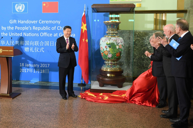 2017年1月18日,習(xí)近平主席出席中國向聯(lián)合國日內(nèi)瓦總部贈禮儀式。