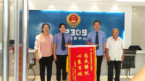 經(jīng)過勸說,雙方各自做出讓步,胡某某也很后悔自己動手打人的行為,率先表達(dá)歉意,并主動賠償2000元,馮某某對處理結(jié)果很滿意,雙方握手言和。事后,馮某某特地制作了一面“心系百姓、為民解憂”的錦旗,并送到淮陽人民區(qū)檢察院,以表達(dá)感謝之情。
