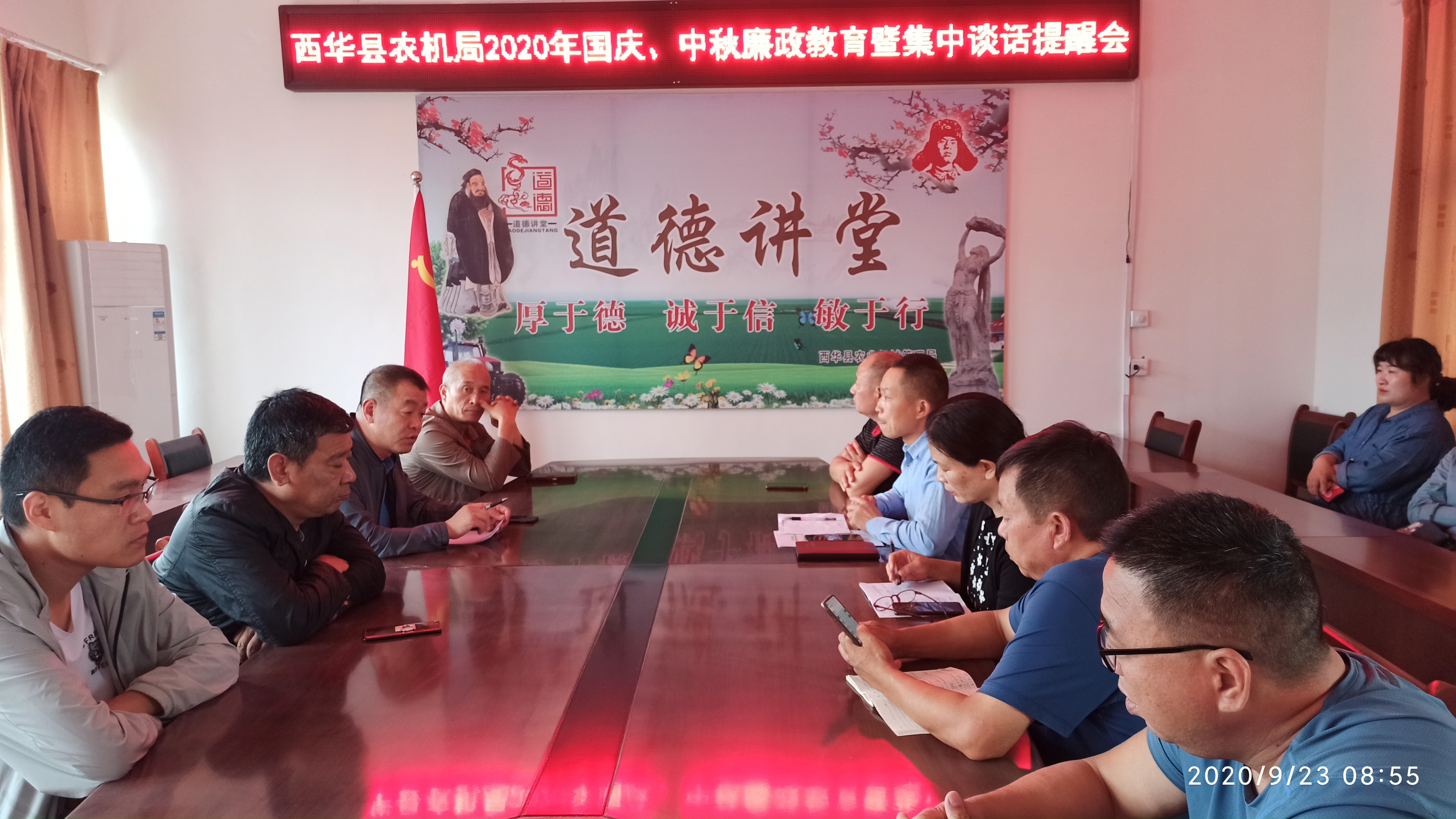 會議傳達(dá)學(xué)習(xí)了市、縣紀(jì)委監(jiān)委《關(guān)于中秋國慶期間監(jiān)督舉報違反中央八項(xiàng)規(guī)定精神問題的通告 》和違反中央八項(xiàng)規(guī)定精神典型案件通報,并結(jié)合工作要求,對全體干部職工就雙節(jié)期間廉潔紀(jì)律進(jìn)行了集中談話提醒。