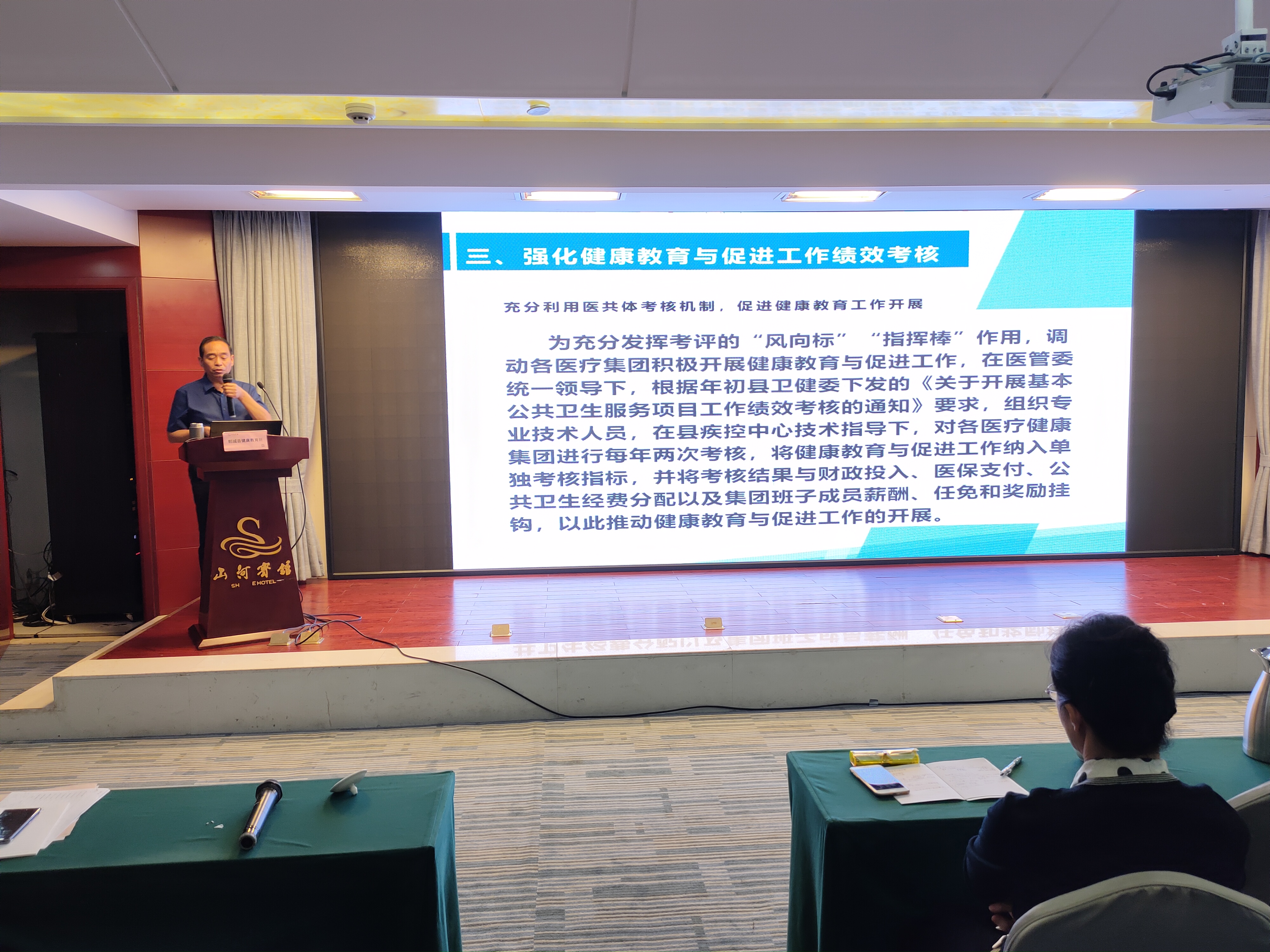 9月23日至24日,河南省疾病預(yù)防控制中心在鄭州舉辦基本公共衛(wèi)生服務(wù)健康教育工作能力培訓(xùn)班。鄲城縣受邀在會上作工作經(jīng)驗交流,縣疾控中心主任張吉志以“高位推動 多措并舉 明確責(zé)任 重抓落實”為題,全面、詳細地介紹了在醫(yī)共體背景下健康促進工作的開展情況。