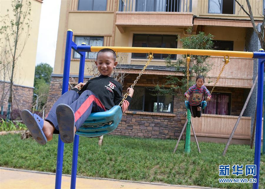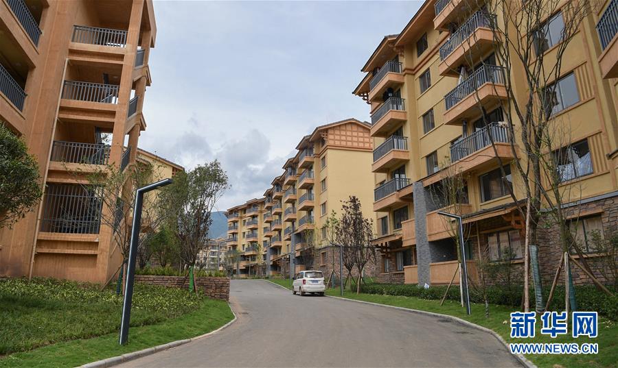 搬下山的人們,住進(jìn)了有彝族傳統(tǒng)建筑風(fēng)格的新社區(qū)(8月11日攝)。 新華社記者 李賀 攝