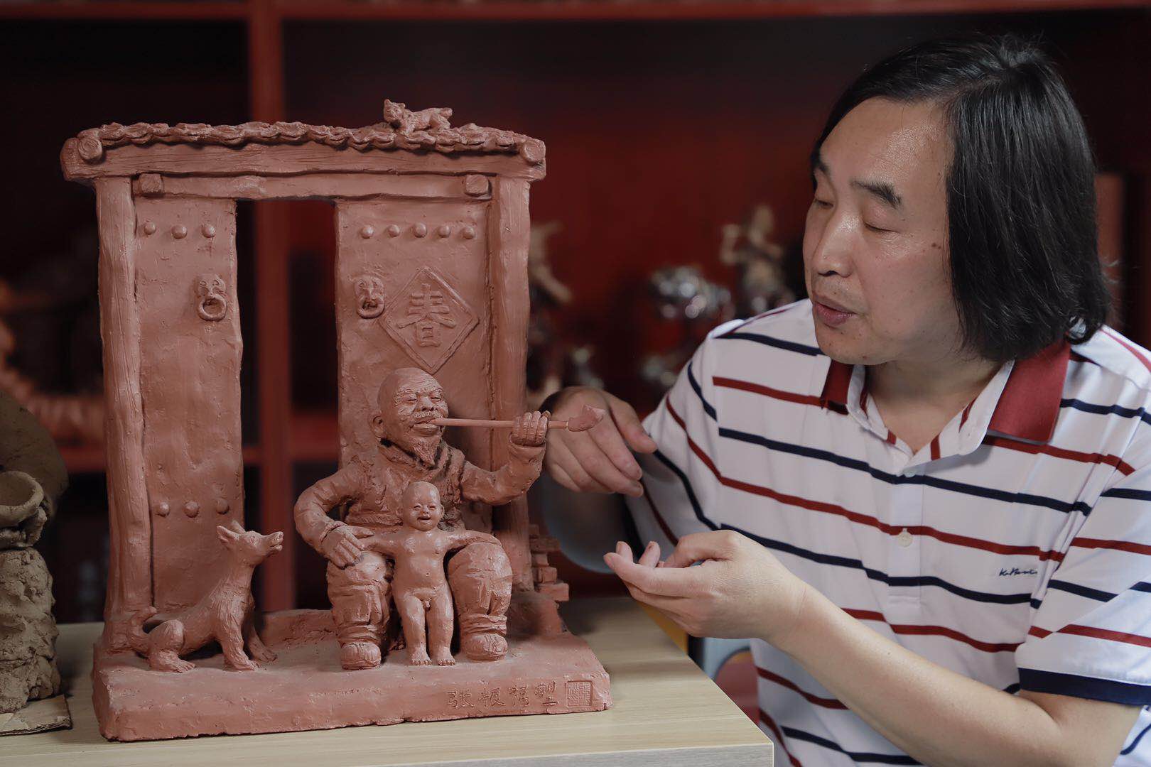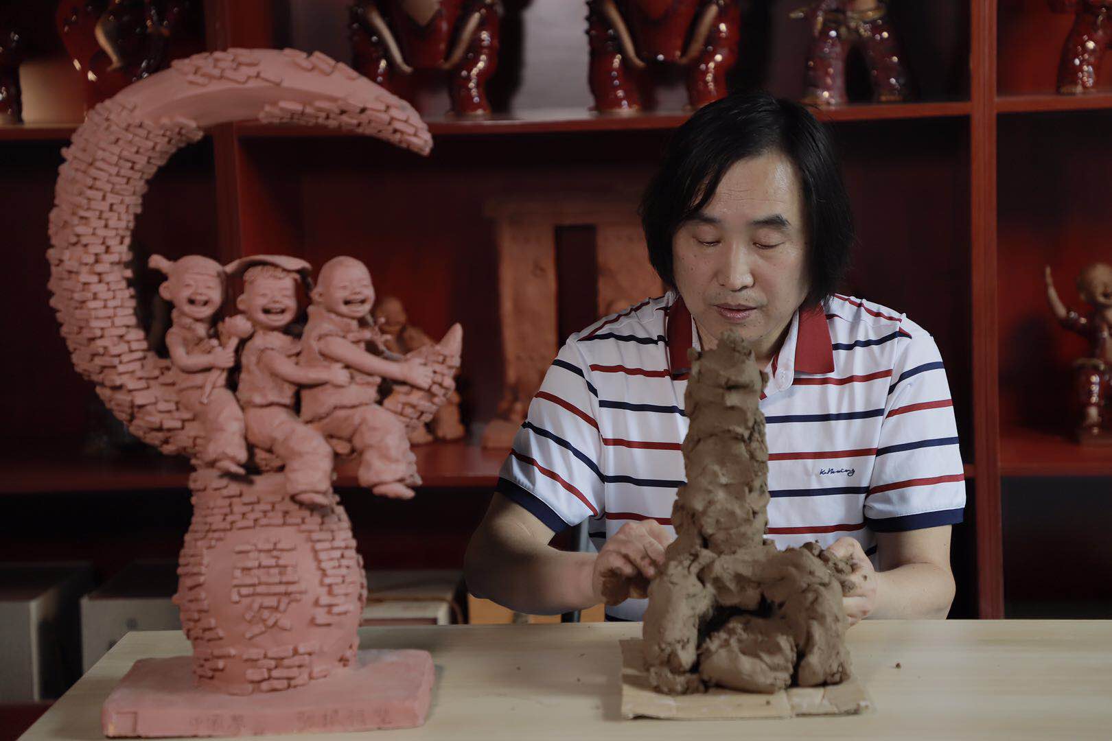 張振福從事泥塑藝術(shù)創(chuàng)作29年,進(jìn)修于河南教育學(xué)院美術(shù)系。經(jīng)過12年潛心研究,成功研制了“鈞瓷泥塑”,多次獲國家、省、市技能大師大獎(jiǎng),也是本次河南省泥塑類唯一入選的建設(shè)項(xiàng)目。項(xiàng)目將從制作平臺(tái)、制作空間、制作設(shè)備等全面進(jìn)行提升改造,將更加有利于中華民俗文化的傳承與傳播。