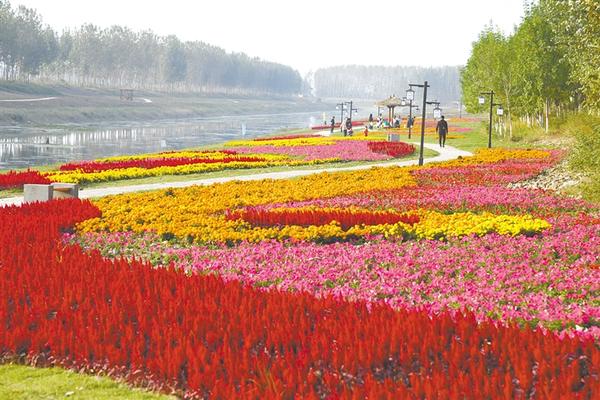 10月20日,市民在商水縣新枯河景觀帶游玩。商水縣把“創(chuàng)文”和農(nóng)村人居環(huán)境整治結(jié)合在一起,加大對城鄉(xiāng)接合部的治理力度,建成街頭小公園、村頭小游園、濱河景觀帶100多處,美化了城市環(huán)境,方便了市民休閑游玩。 記者 付永奇 攝