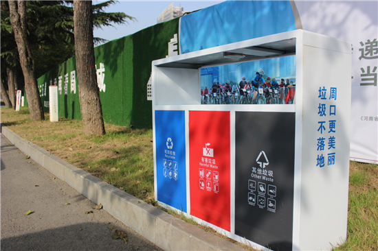 10月21日,記者在中心城區(qū)七一路東段、慶豐中路等路段看到,“藍(lán)、紅、黑”三色的新型分類(lèi)垃圾桶在街邊整齊“列隊(duì)”,成為街頭一道靚麗的風(fēng)景。