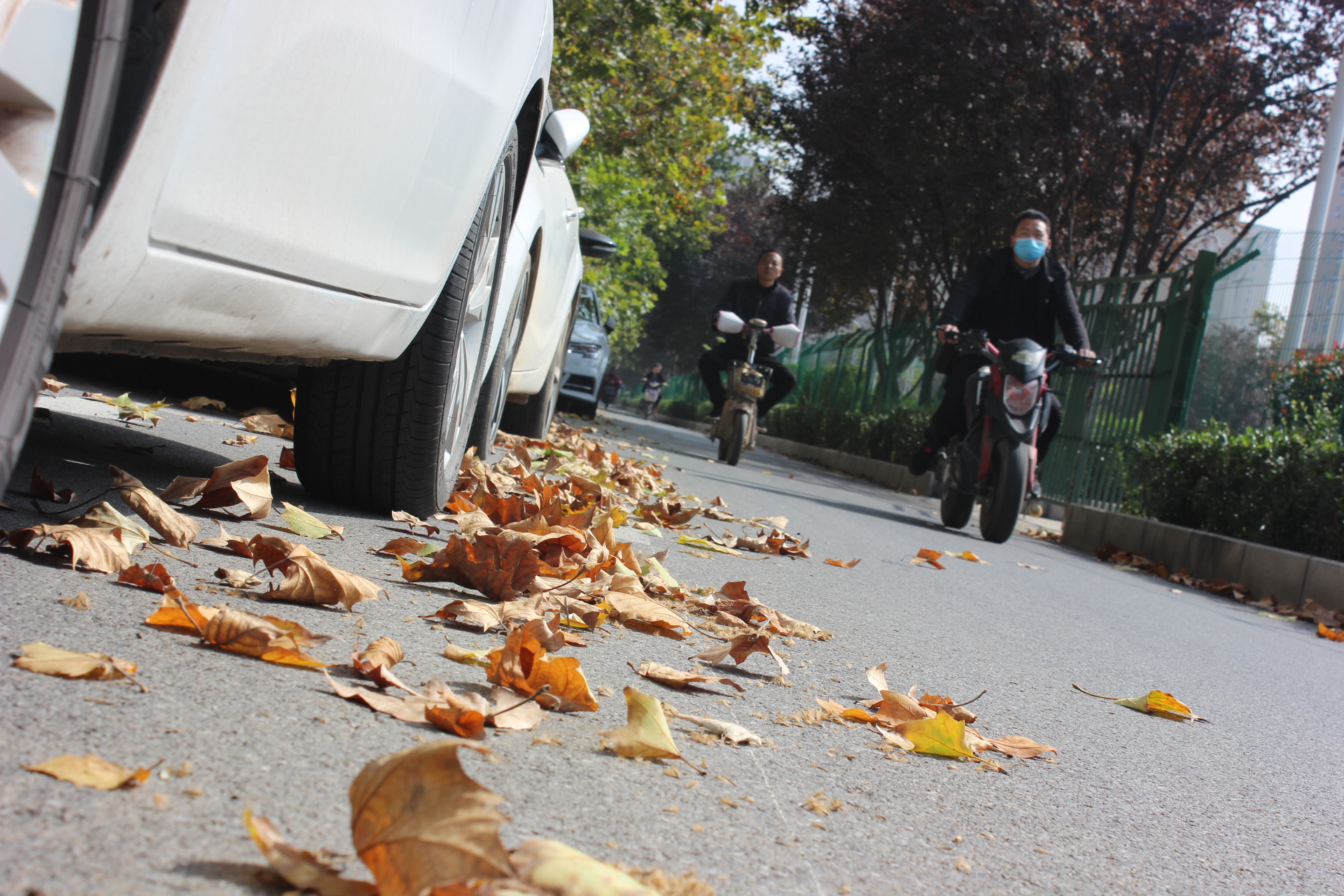 圖1 路邊的法桐樹落葉讓秋天更有味道 見習記者 孫靖 攝