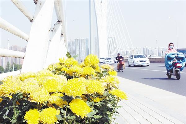 10月21日,市民從大慶路橋上經(jīng)過。記者在中心城區(qū)街頭看到,各式各樣的花卉、綠植擺放成各類造型,提升了城市顏值,為“創(chuàng)文”中的周口增色不少。見習(xí)記者 孫靖 攝
