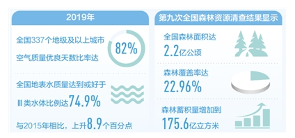 5年砥礪前行,污染防治攻堅戰(zhàn)全面推進(jìn)。截至2019年底,“十三五”規(guī)劃綱要確定的生態(tài)環(huán)境領(lǐng)域9項(xiàng)約束性指標(biāo),有8項(xiàng)已提前完成。天藍(lán)水凈地綠的美麗中國正向我們走來。