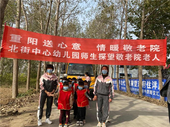東夏亭鎮(zhèn)北街中心幼兒園園長(zhǎng)袁百成說(shuō):“重陽(yáng)節(jié)也是老人節(jié)。帶領(lǐng)小朋友們到敬老院開(kāi)展慰問(wèn)老人活動(dòng),就是要從小培養(yǎng)他們尊老、愛(ài)老、敬老的情懷,發(fā)揚(yáng)尊老、愛(ài)老、敬老的優(yōu)良傳統(tǒng)。也讓敬老院的孤寡老人真正感受到來(lái)自大家庭的溫暖。”