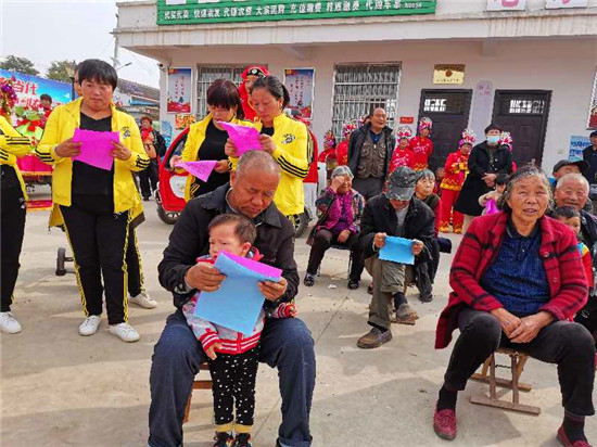 “俺家住在老冢鎮(zhèn),平安建設(shè)常宣傳。專職巡邏無被盜,提高群眾安全感……”這是10月20日,在太康縣老冢鎮(zhèn)新李村文化廣場(chǎng)上村民們表演的方言快板《安全感調(diào)查》,通俗易懂的語言,精彩有趣的說唱贏得了在場(chǎng)群眾的陣陣掌聲。