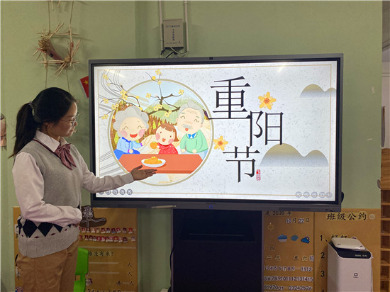 在幼兒園班級活動中,教師通過圖片和視頻等幼兒喜聞樂見的形式,讓幼兒了解重陽節(jié)的習(xí)俗,明白了重陽節(jié)的意義。孩子們還用彩紙、水彩等為爺爺奶奶制作了賀卡和禮物,表達自己對老人的愛。