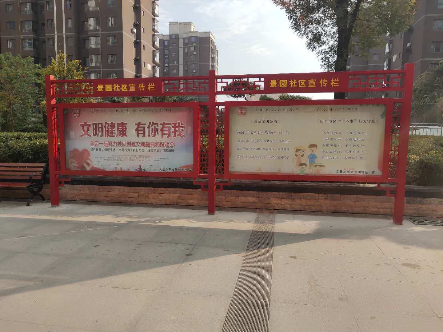 隨著周口創(chuàng)建全國文明城市提名城市工作的不斷深入,文明觀念逐漸深入人心,一些社區(qū)的宣傳欄、公告欄上的“野廣告”不見了,取而代之的是各種“創(chuàng)文”宣傳,《社會主義核心價值觀》《我周口市民文明公約》等宣傳標語隨處可見。②18(見習記者 呂冰汝 攝)