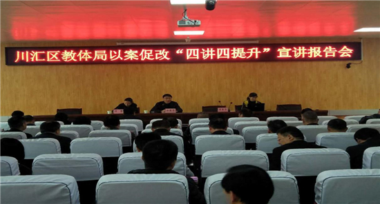10月27日上午,川匯區(qū)教育體育局根據(jù)區(qū)委、區(qū)紀(jì)委、區(qū)紀(jì)委監(jiān)委統(tǒng)一安排,組織開(kāi)展以案促改“四講四提升”宣講活動(dòng)。區(qū)教體局黨組書(shū)記徐德志主持活動(dòng)。區(qū)委黨校教員李?lèi)?ài)芬主講。區(qū)教體局全體工作人員、局屬二級(jí)機(jī)構(gòu)負(fù)責(zé)人、全區(qū)各中小學(xué)幼兒園校長(zhǎng)、園長(zhǎng)參加活動(dòng)。