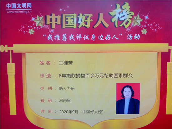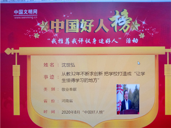 日前,中國文明網(wǎng)公布今年8月、9月中國好人評選結(jié)果:太康縣第一高級中學(xué)黨委書記、校長沈世弘從教32年不斷求創(chuàng)新,榮登8月敬業(yè)奉獻類“中國好人榜”;太康縣平安養(yǎng)殖專業(yè)合作社理事長王桂芳8年捐款捐物百余萬元幫助困難群眾,榮登9月“中國好人榜”。至此,太康縣中國好人上榜人數(shù)達66人,位居全國縣級市首位。