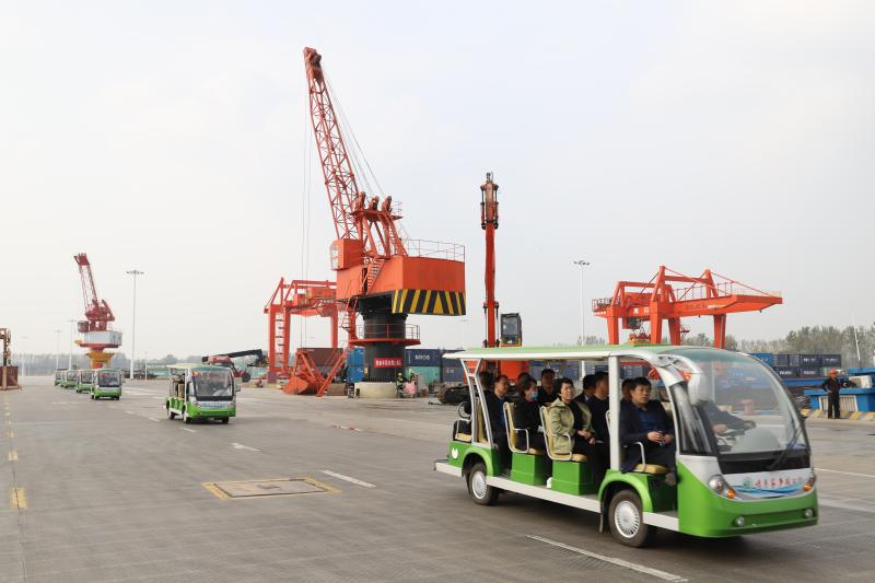 在中心港碼頭,工作人員向來賓詳細(xì)介紹了周口的航運(yùn)總體情況,以及在周口大力發(fā)展臨港經(jīng)濟(jì)的大背景下,周口港區(qū)臨港產(chǎn)業(yè)規(guī)劃布局和發(fā)展現(xiàn)狀。隨后,來賓乘坐觀光車,到港池前沿近距離了解碼頭運(yùn)營情況,親身感受碼頭繁忙的作業(yè)現(xiàn)場同時(shí),來賓們向工作人員了解碼頭貨源、運(yùn)量、運(yùn)輸費(fèi)用等問題,工作人員詳細(xì)解答。大家紛紛贊嘆:“想不到中原腹地?fù)碛腥绱藘?yōu)越的水運(yùn)條件,還建設(shè)了規(guī)模宏大的內(nèi)河港口,周口臨港經(jīng)濟(jì)發(fā)展氣勢如虹,前景一片光明!”②9