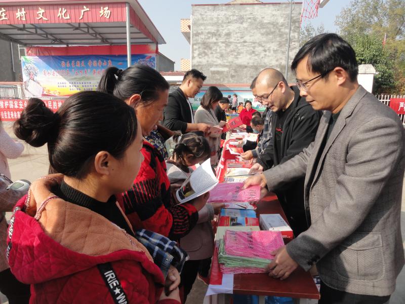 為紀念《反間諜法》頒布實施6周年,商水縣委政法委、縣委國安辦等單位聯(lián)合開展普法教育進鄉(xiāng)村活動,通過發(fā)放宣傳資料、展示宣傳版面、現(xiàn)場講解等形式對群眾進行國安教育和法治教育。圖為11月1日,工作人員在活動現(xiàn)場向村民發(fā)放宣傳資料。