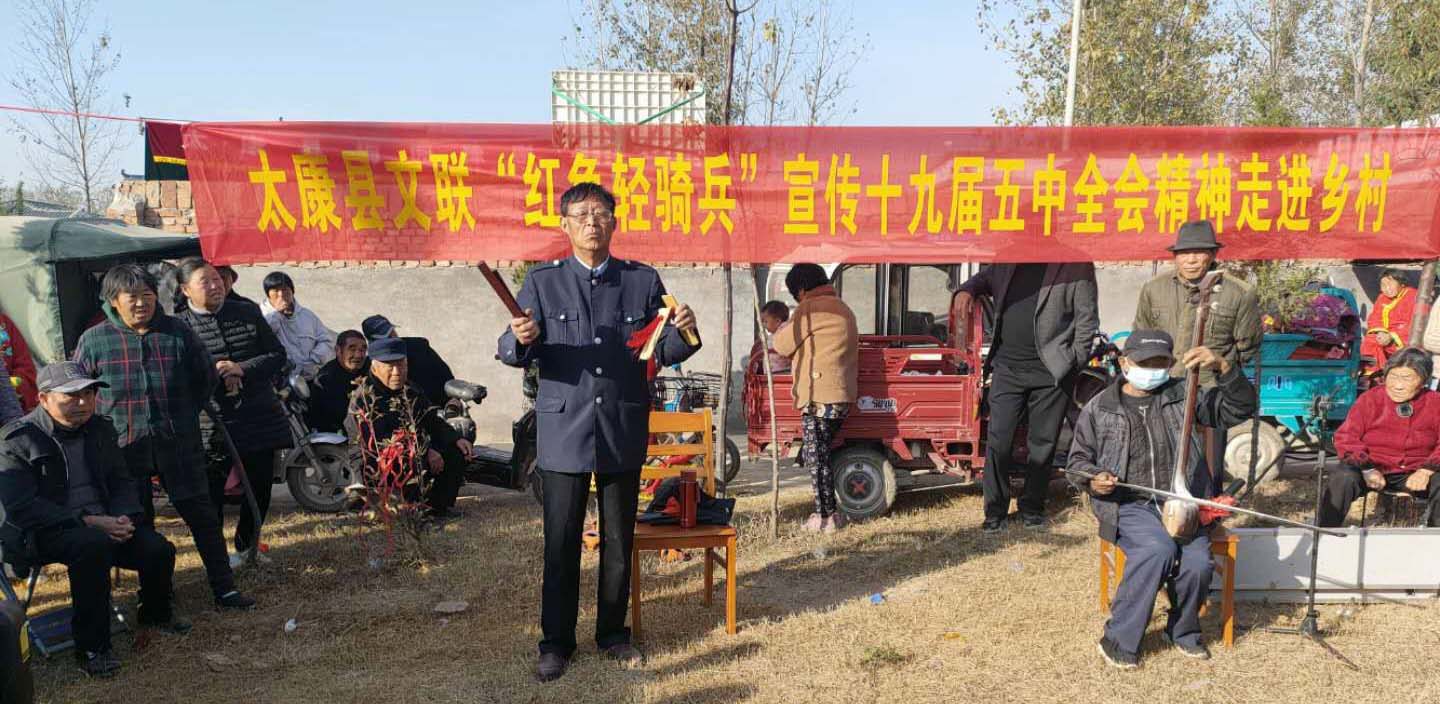 2020年10月26日至29日,黨的十九屆五中全會在北京召開,全會審議通過了《中共中央關(guān)于制定國民經(jīng)濟(jì)和社會發(fā)展第十四個五年規(guī)劃和二Ο三五年遠(yuǎn)景目標(biāo)的建議》,這是我國奪取全面建設(shè)社會主義現(xiàn)代化國家新勝利的綱領(lǐng)性文件。作為宣傳陣地的文藝輕騎兵,太康縣文聯(lián)迅速組織太康縣民間文藝家協(xié)會、太康縣曲藝家協(xié)會、太康縣文藝志愿者協(xié)會的藝術(shù)家組建文藝“紅色輕騎兵”在全縣開展黨的十九屆五中全會精神的宣傳活動。