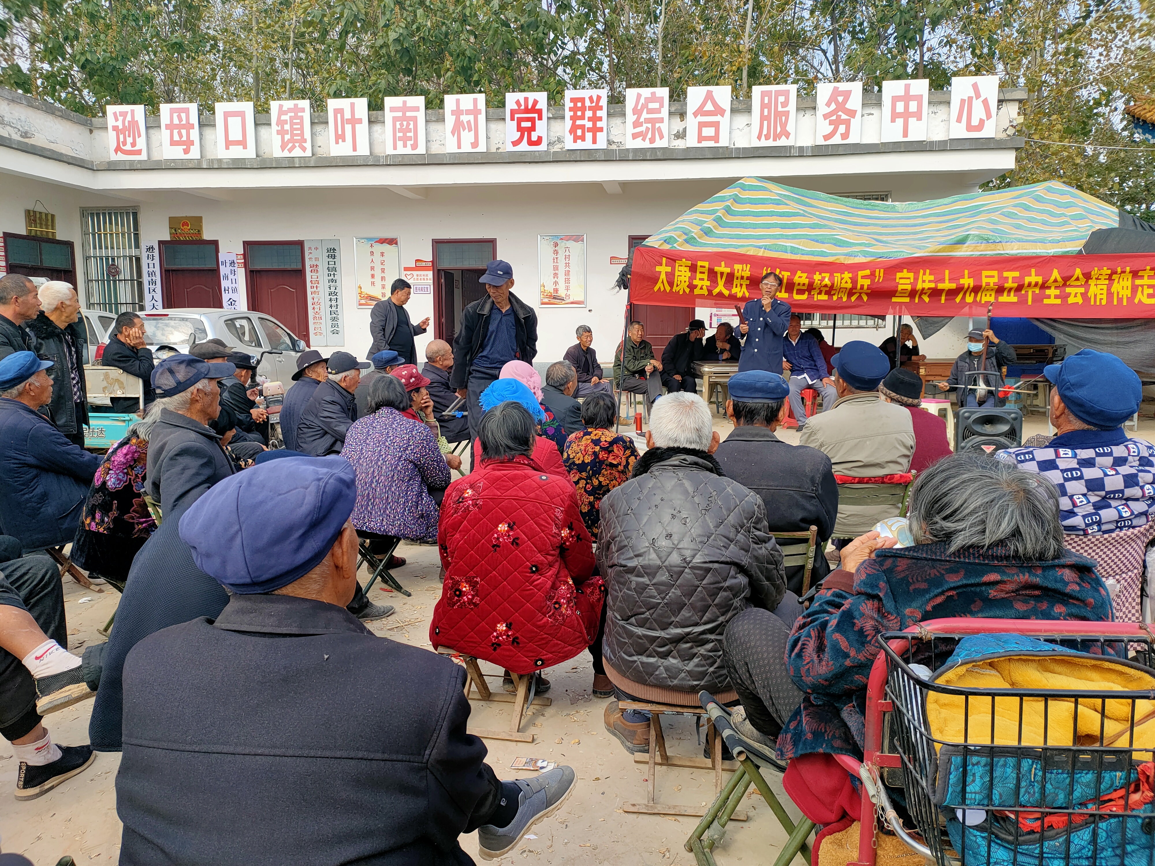 4日上午,太康縣文聯(lián)“紅色輕騎兵”首站走進(jìn)遜母口鎮(zhèn)葉南村,在葉南村黨群綜合服務(wù)中心,以老百姓喜聞樂見的說唱藝術(shù)形式,宣傳黨的五中全會精神。身兼太康縣民協(xié)和曲協(xié)主席的老藝術(shù)家王在禮,演唱了漁鼓道情《十九屆五中全會精神夸一夸》,以說唱形式,向老鄉(xiāng)們介紹黨的十九屆五中全會的精神;藝術(shù)家趙洪杰演唱了河南墜子《酒色財氣》,勸老鄉(xiāng)們摒棄陋習(xí),奮發(fā)向上建設(shè)新農(nóng)村;曲藝家鄭明禮演唱了河南墜子《孝雙親》,倡導(dǎo)愛老敬老好風(fēng)尚……二胡悠揚(yáng),檀板輕搖,藝術(shù)家們的演出受到老鄉(xiāng)們的歡迎。