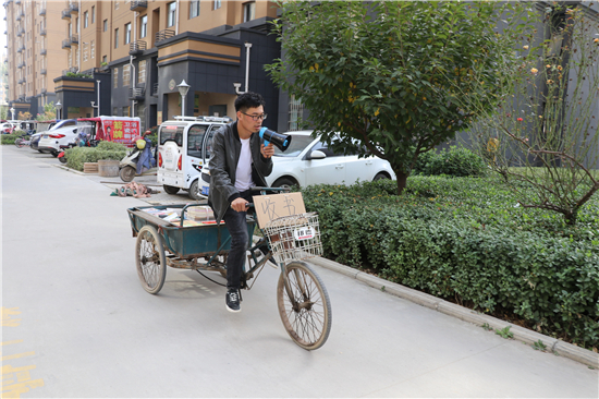 行駛30多分鐘后,劉啟昌來到太康縣城鑫港灣小區(qū),打開喇叭開關,吆喝了起來:“誰家賣書,誰家有多余的書籍賣……”聽到吆喝聲,居民崔海英從家里抱出來一摞書。“全是作文書,學生看了對寫作有好處?!贝藓S褧f給劉啟昌說。