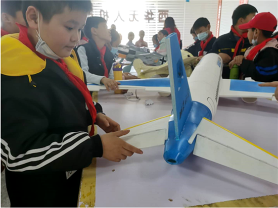 除了觀看有趣的表演外,更多的同學(xué)好奇地想一探無人機(jī)飛行的秘密。在安明慧帶領(lǐng)下,一群興奮又好奇的同學(xué)參觀了無人機(jī)5S展廳,聽取了多種植保無人機(jī)的用途及作業(yè)效率介紹;在無人機(jī)產(chǎn)業(yè)園大數(shù)據(jù)中心,觀看了無人機(jī)應(yīng)用視頻及大數(shù)據(jù)視頻;在無人機(jī)產(chǎn)業(yè)園科普室,觀摩了擺放的各種模型機(jī),有的同學(xué)還在黨員飛手的指導(dǎo)下,組裝了飛機(jī)模型,提高大家的動手能力和對航空航天的熱愛和興趣,讓同學(xué)們度過了一個愉快的周末。