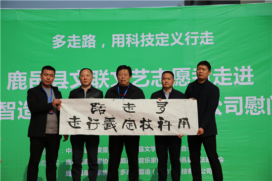 初冬天氣暖,小似立春時(shí)。11月15日上午,由鹿邑縣委宣傳部、鹿邑縣文聯(lián)主辦,縣曲藝家協(xié)會(huì)、音樂(lè)家協(xié)會(huì)、書法家協(xié)會(huì)、朗誦家協(xié)會(huì)與多走路智造(河南)科技有限公司聯(lián)手承辦的文藝志愿者慰問(wèn)演出活動(dòng),在鹿邑縣產(chǎn)業(yè)集聚區(qū)多走路智造(河南)科技有限公司開(kāi)幕??h委宣傳部常務(wù)副部長(zhǎng)閆廣軍、縣文聯(lián)主席王亞飛出席活動(dòng)。