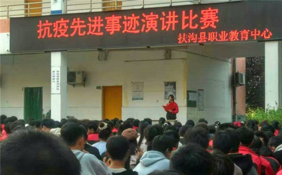 這是扶溝縣職業(yè)教育中心2020級美術班賈珍珍同學的激情演講。他的演講,感染了在場的1000余名師生。11月14日,為落實扶溝縣教體局《關于加強新時代中小學思想政治理論課教師隊伍建設工作的實施方案》中“發(fā)掘地方資源,開展先進人物和紅色教育進課堂活動,讓思政課成為有溫度的課”的具體要求,學校思政處組織開展了以歌頌該縣人民醫(yī)院護士劉海燕先進事跡為主題的“抗疫先進事跡”演講比賽。