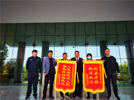 “人民法院為人民,強制執(zhí)行解民憂”“打擊老賴,執(zhí)法如山”。11月20日,鄲城縣王某剛把兩面鮮艷的錦旗送到鄲城縣法院執(zhí)行民警手中,眼含熱淚,感激不已。