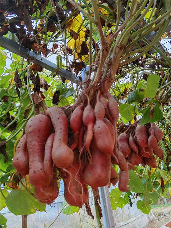 西華縣農(nóng)科所積極開(kāi)展“空中結(jié)薯”試驗(yàn)種植研究,并取得成功?!翱罩薪Y(jié)薯”采取嫁接技術(shù),選用旋花科植物牽牛作砧木,脫毒薯苗作接穗嫁接而成,嫁接成活后栽到土壤里,搭建棚子,加強(qiáng)薯苗水肥管理,每株插一根小竹木桿,促進(jìn)薯苗快速生長(zhǎng)上棚,在棚上吊花盆,盆內(nèi)放蛭石,生長(zhǎng)到掤上的薯秧壓到花盆里,加強(qiáng)水肥管理。90天結(jié)薯,進(jìn)入10月份把花盆去掉。該技術(shù)打破傳統(tǒng)栽培方式,主要為公園、科技園區(qū)、農(nóng)業(yè)生態(tài)觀光園、家庭庭院內(nèi)培植,有很好的科研價(jià)值、觀賞價(jià)值和農(nóng)業(yè)推廣價(jià)值。周口日?qǐng)?bào)·周道客戶端記者李鳳霞 攝