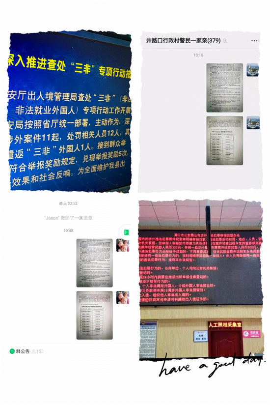 組織集中宣傳。為全面提升宣傳效果,鄲城縣公安局出入境管理科民警面對面向400余名群眾講解市公安局涉外違法犯罪舉報獎勵辦法、國家移民管理局12項移民出入境便利政策措施和疫情防控常態(tài)化非常態(tài)管理等。同時,利用社區(qū)警民微信群、平安建設(shè)微信群、警務(wù)微信群、一村一警工作微信群等不間斷宣傳,并要求每日轉(zhuǎn)發(fā)內(nèi)容截圖上報,進一步提高了人民群眾的知曉率和參與度。